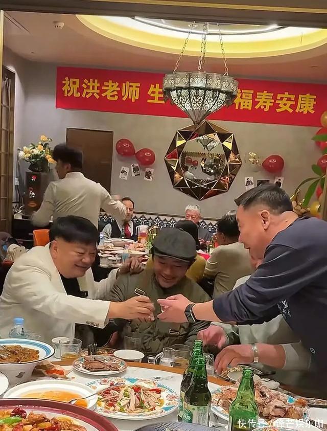 外人看的是排场,内行看的是“回血”。16箱茅台拆箱,瓶口的红飘带一抖,现场立刻变成“小型剧组”。《武林外传》的老兄弟李彬,自己带启瓶器,边倒酒边报账:“2003年拍《炊事班》,洪哥欠我一顿酒,今天终于按央行利息结账。”众人哄笑,笑声里带着复利——那部剧片酬一集两千,今天这杯酒市值三千八,感情跑赢通胀,比理财靠谱。