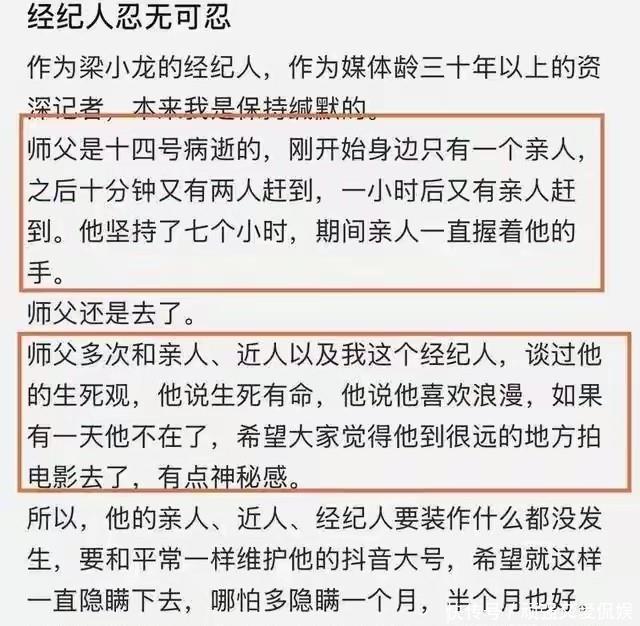 他账号后来发的几条视频,经纪人自己出镜说清楚了:全是去年十月到十二月录好的,存着等过年发。没加广告,没开直播,没卖货,连字幕都是他亲手写的。后台时间戳调出来,一条条对得上。宋骧老师,他老婆,武馆一直她在管。人走后,武馆关门,所有商业合作全停,连葬礼地址都没给媒体。有记者蹲在深圳龙岗殡仪馆外头,被她直接请走。她就说一句:“老爷子不想吵。”